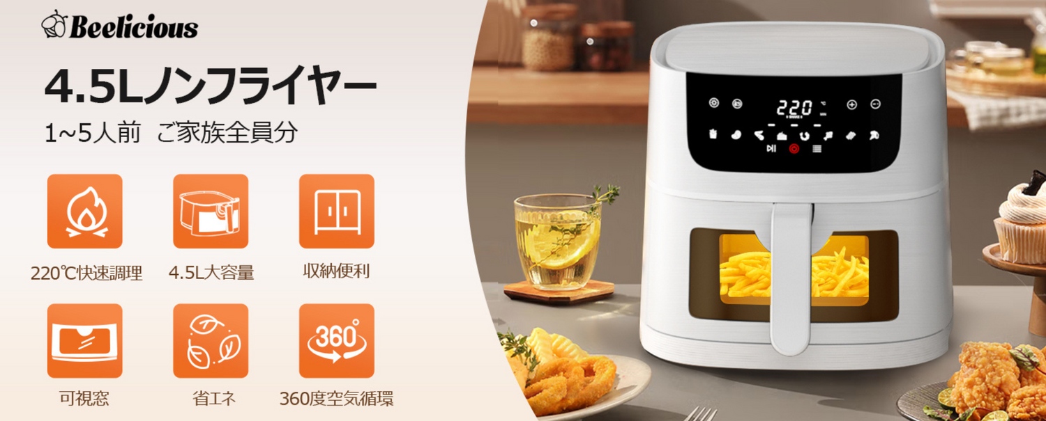 Beelicious(ビーリシャス)は、中が見える透明窓と360°高速空気循環技術を搭載した「見える窓付き ノンフライヤー(AF4007)」を発売いたします。